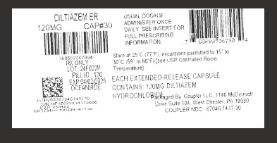 The following image provide visual information about the product associated with Diltiazem Hydrochloride Extended Release NDC 67046-1417 by Coupler Llc, such as packaging, labeling, and the appearance of the drug itself. This resource could be helpful for medical professionals, pharmacists, and patients seeking to verify medication information and ensure they have the correct product.