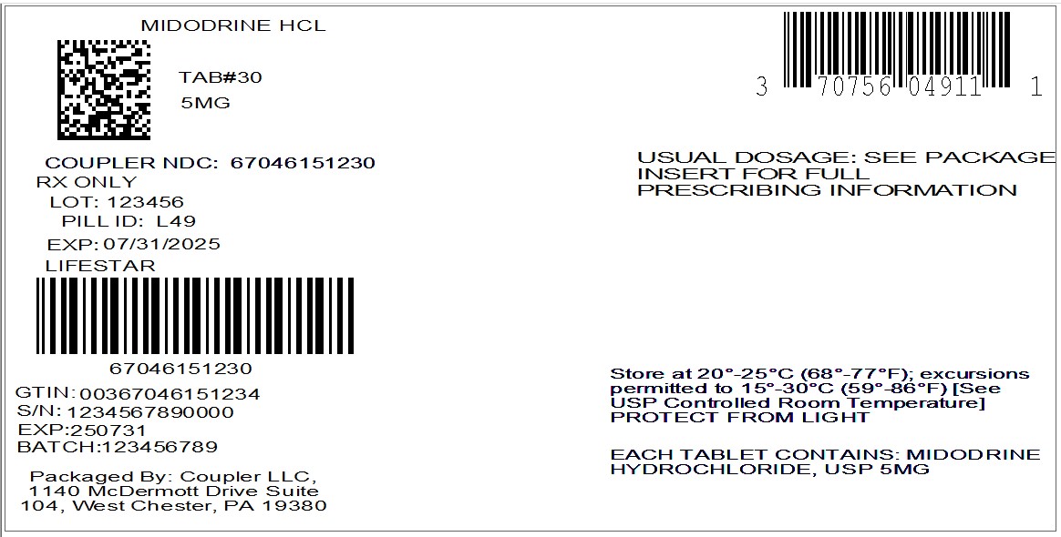 The following image provide visual information about the product associated with Midodrine Hydrochloride NDC 67046-1512 by Coupler Llc, such as packaging, labeling, and the appearance of the drug itself. This resource could be helpful for medical professionals, pharmacists, and patients seeking to verify medication information and ensure they have the correct product.