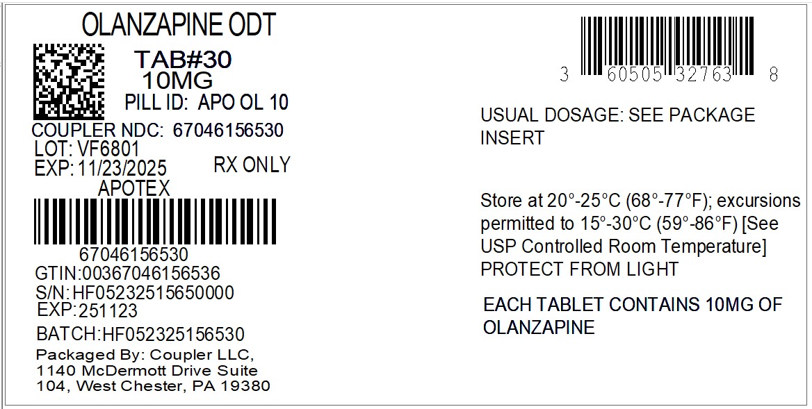 The following image provide visual information about the product associated with Olanzapine NDC 67046-1565 by Coupler Llc, such as packaging, labeling, and the appearance of the drug itself. This resource could be helpful for medical professionals, pharmacists, and patients seeking to verify medication information and ensure they have the correct product.