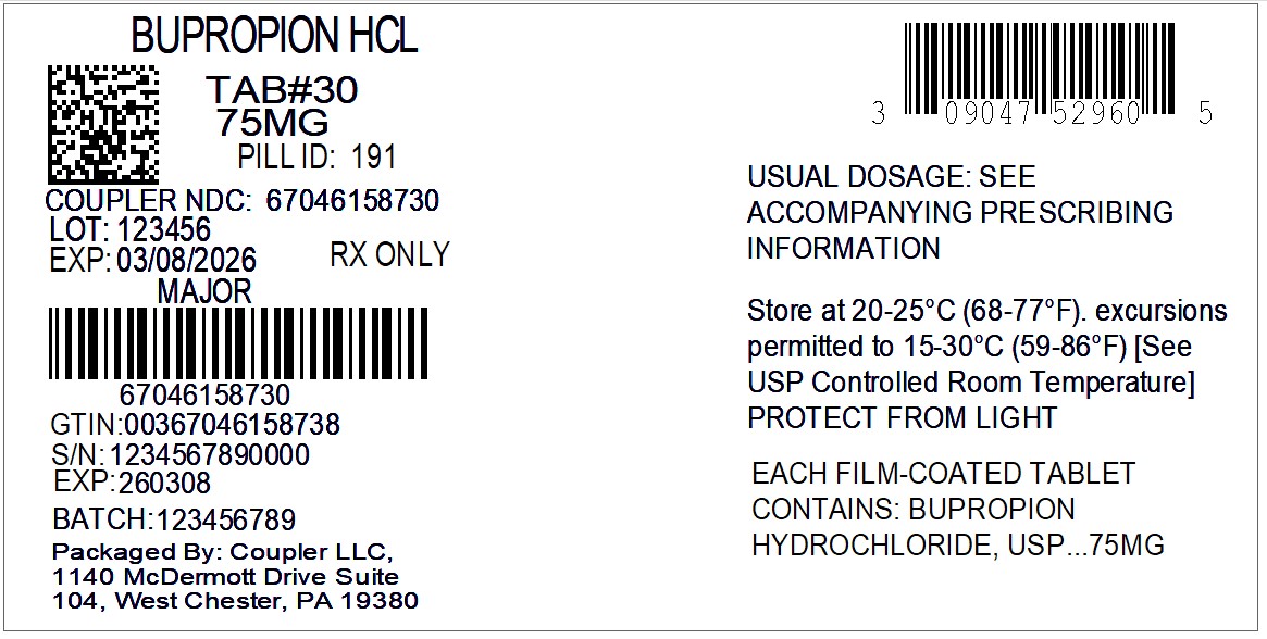 The following image provide visual information about the product associated with Bupropion Hydrochloride NDC 67046-1587 by Coupler Llc, such as packaging, labeling, and the appearance of the drug itself. This resource could be helpful for medical professionals, pharmacists, and patients seeking to verify medication information and ensure they have the correct product.