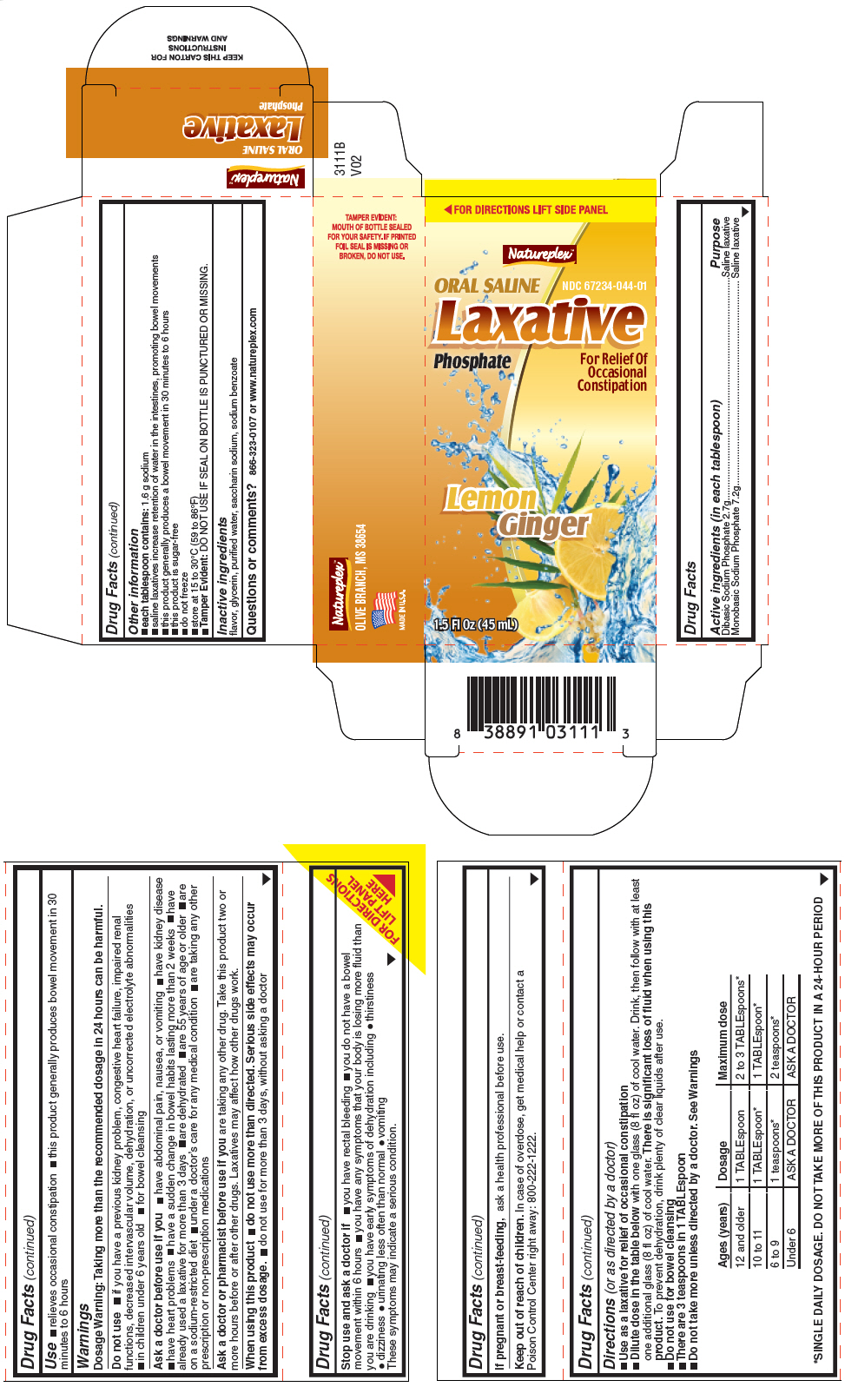 The following image provide visual information about the product associated with Oral Saline Laxative Lemon Ginger NDC 67234-044 by Natureplex, Llc, such as packaging, labeling, and the appearance of the drug itself. This resource could be helpful for medical professionals, pharmacists, and patients seeking to verify medication information and ensure they have the correct product.
