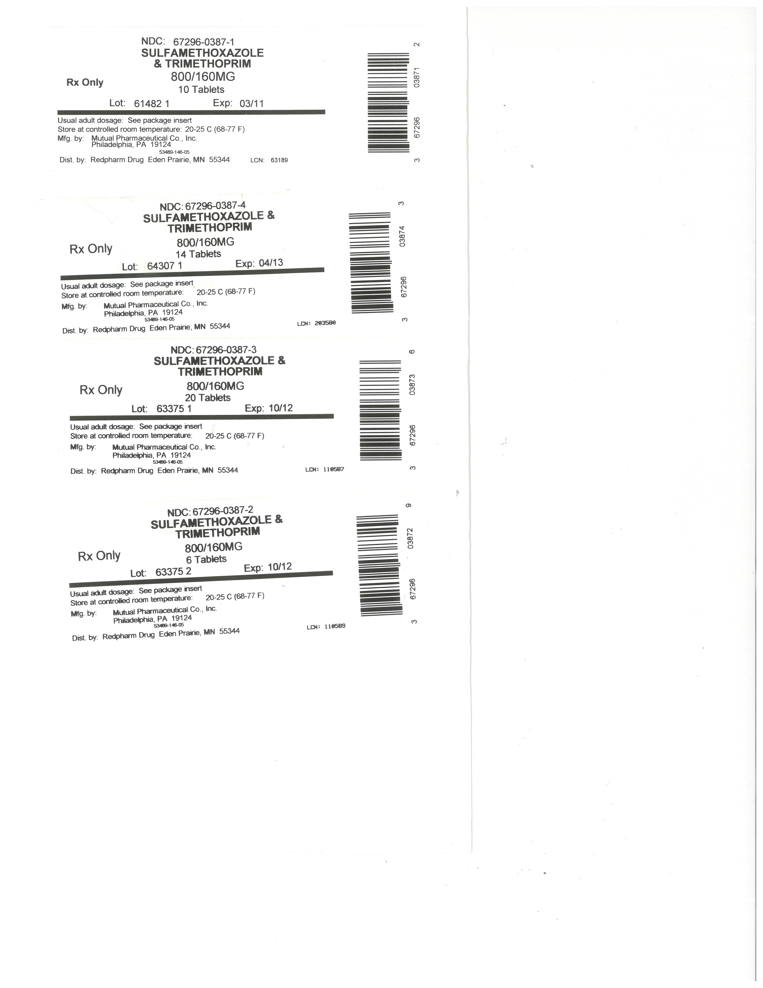 The following image provide visual information about the product associated with Sulfamethoxazole And Trimethoprim NDC 67296-0387 by Redpharm Drug, Inc., such as packaging, labeling, and the appearance of the drug itself. This resource could be helpful for medical professionals, pharmacists, and patients seeking to verify medication information and ensure they have the correct product.