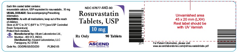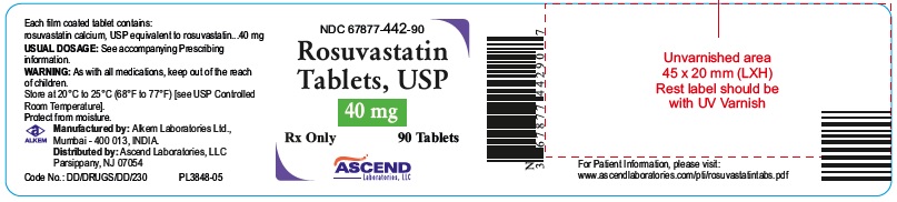 This is a description of a medication package containing Rosuvastatin tablets. The tablets come in a bottle with 90 tablets. The usual dosage should be followed as per the prescription information. The medication should be stored at room temperature between 68 to 77 degrees Fahrenheit. It is important to keep the medication out of the reach of children. The manufacturer is Akorn Laboratories and the distributor is Ascend Laboratories. The package label should be 45x20 mm and should be varnished with UV protection.*