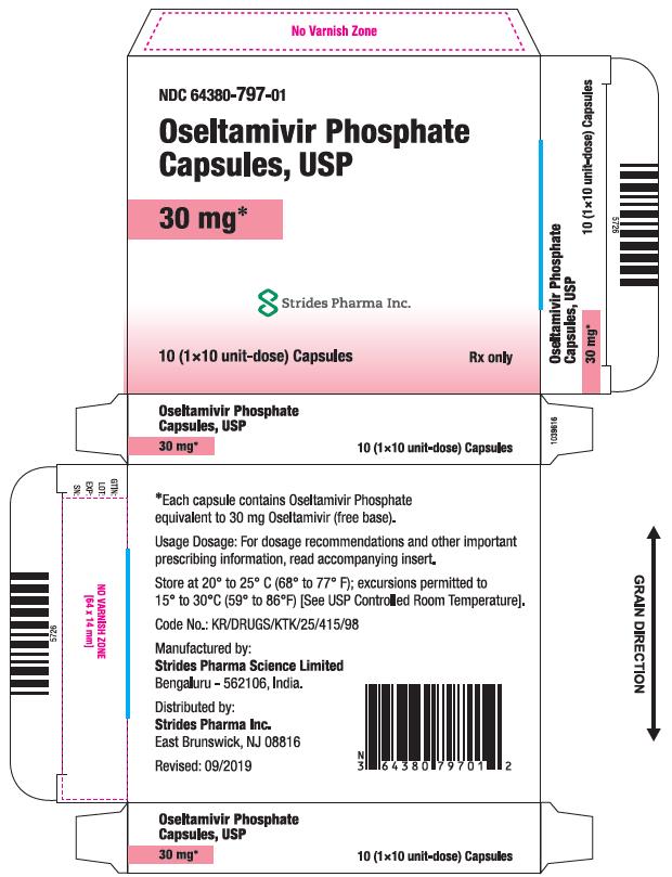 This text provides information about Oseltamivir Phosphate Capsules, USP, which come in a package of 10 (1x10 unit-dose) capsules. Each capsule contains Oseltamivir Phosphate equivalent to 45 mg of Oseltamivir free base. The usage dosage, storage instructions, manufacturing details by Strides Pharma Science Limited, and distribution information by Strides Pharma Inc. are also included. For more prescribing details, it is advised to refer to the accompanying insert.*