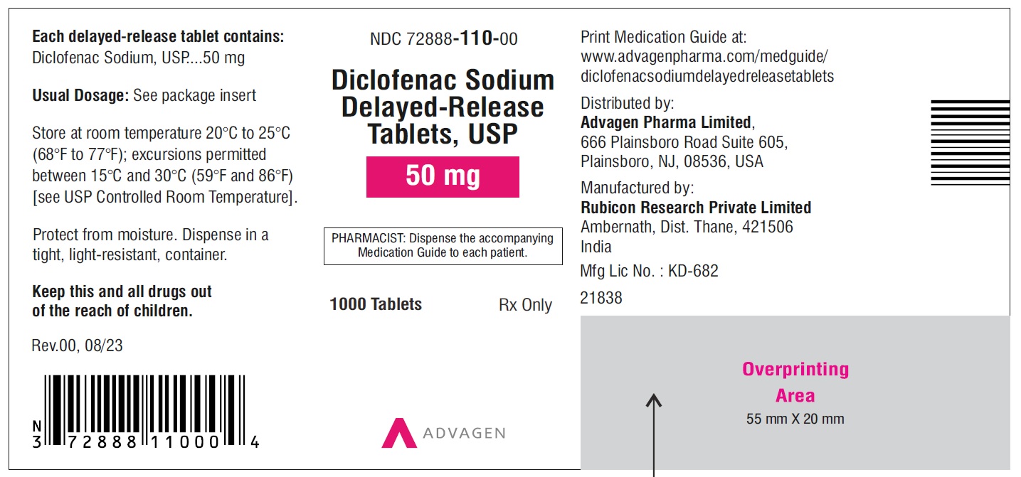 Diclofenac Sodium DR Tablets 50mg - NDC 72888-110-00 - 1000 Tablets Label - diclofenac sodium dr tablets usp 50mg 1000s