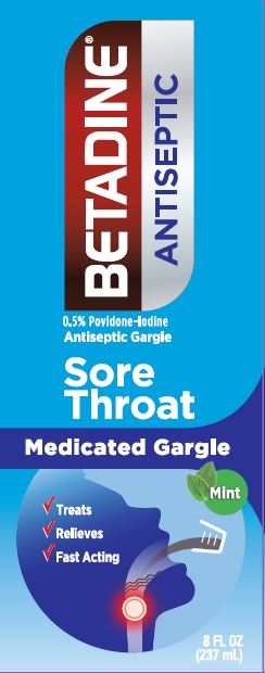 The text describes a medication called Betadine, which is an antiseptic gargle with 0.5% Povidone-iodine. This medication is designed to alleviate the symptoms of a sore throat and is in the form of a medicated gargle.*