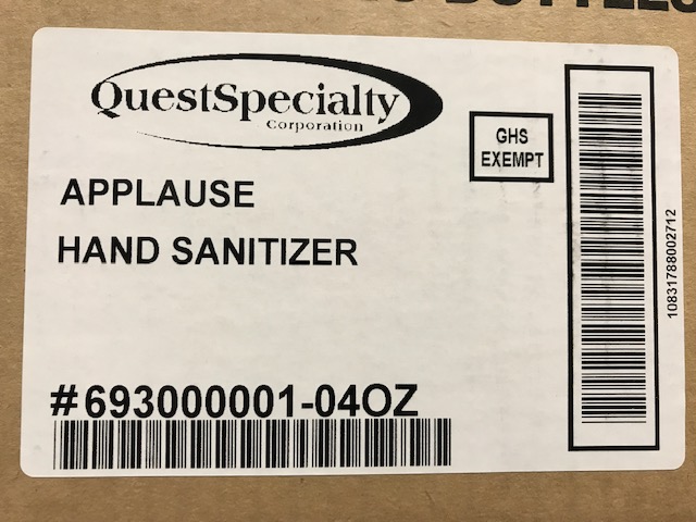 This is a label for a hand sanitizer product called "APPLAUSE" that has been exempt from certain regulations outlined in the Globally Harmonized System of Classification and Labelling of Chemicals (GHS). The product has an identification number "1.0407" and includes the letters "IR".*
