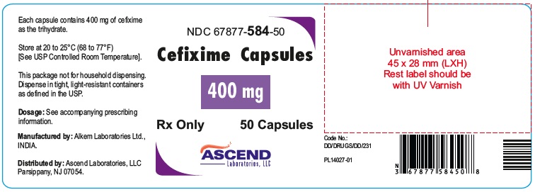 The following 4 images provide visual information about the product associated with Cefixime NDC 67877-584 by Ascend Laboratories, Llc, such as packaging, labeling, and the appearance of the drug itself. This resource could be helpful for medical professionals, pharmacists, and patients seeking to verify medication information and ensure they have the correct product.
