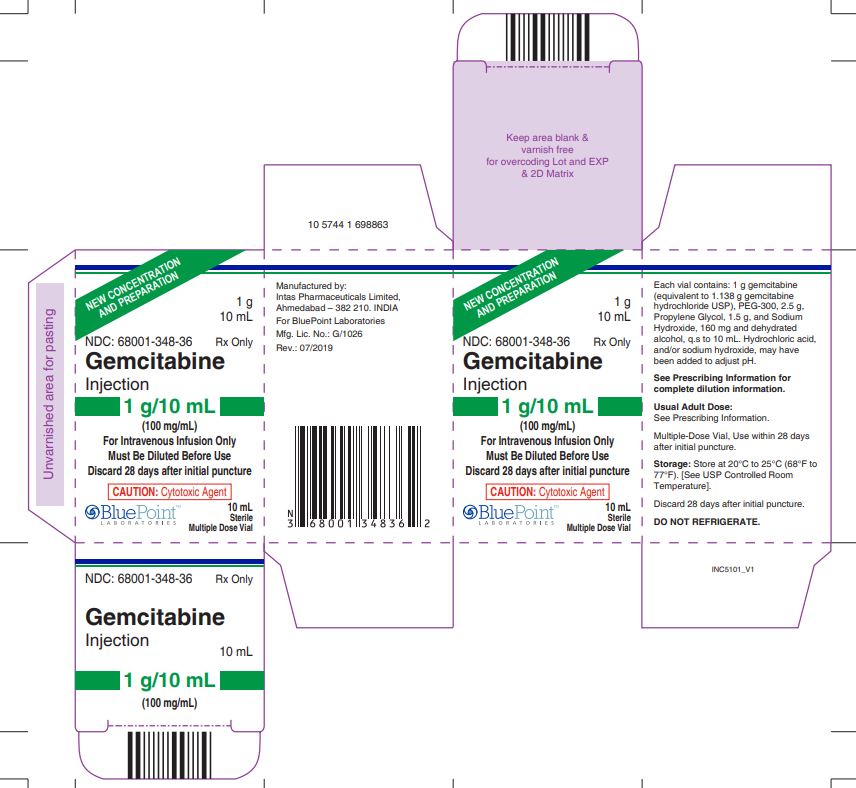 Gemcitabine Injection is a medication that is only available with a prescription. It is provided in a 1 9/10 mL vial containing 100 mg/mL of the active ingredient. This medication is intended for intravenous infusion only and must be diluted before use. Complete dosage and usage instructions can be found in the accompanying prescribing information. Gemcitabine Injection should be stored at Controlled Room Temperature between 20°C to 25°C (68°F to 77°F). It should not be refrigerated and must be discarded 28 days after the initial puncture. This medication is manufactured by Intas Pharmaceuticals Limited in India, under BluePoint Laboratories. It is available in a multiple dose vial.*