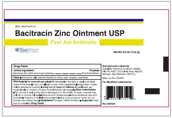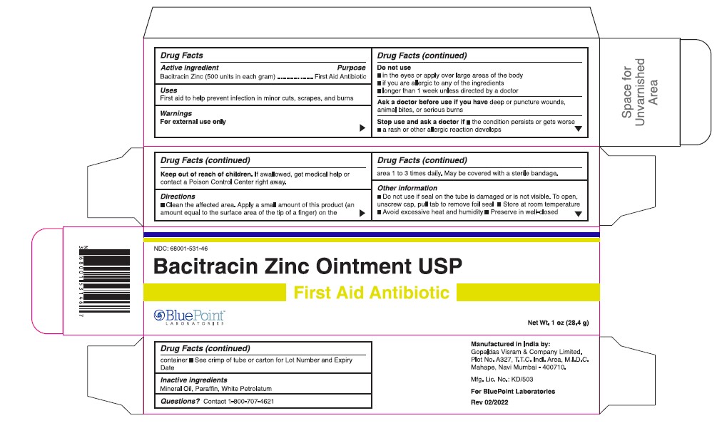 The following 4 images provide visual information about the product associated with Bacitracin Zinc NDC 68001-531 by Bluepoint Laboratories, such as packaging, labeling, and the appearance of the drug itself. This resource could be helpful for medical professionals, pharmacists, and patients seeking to verify medication information and ensure they have the correct product.