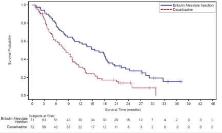 This text appears to be a description of a medical product labeled as "Eribulin Mesylate Injection." It is mentioned to be a cytotoxic agent administered intravenously, with specific dosage information provided. The product is in single-dose vials and should be discarded if unused. Additional prescribing information is available to guide its use. Please consult the accompanying Prescribing Information for further details.*