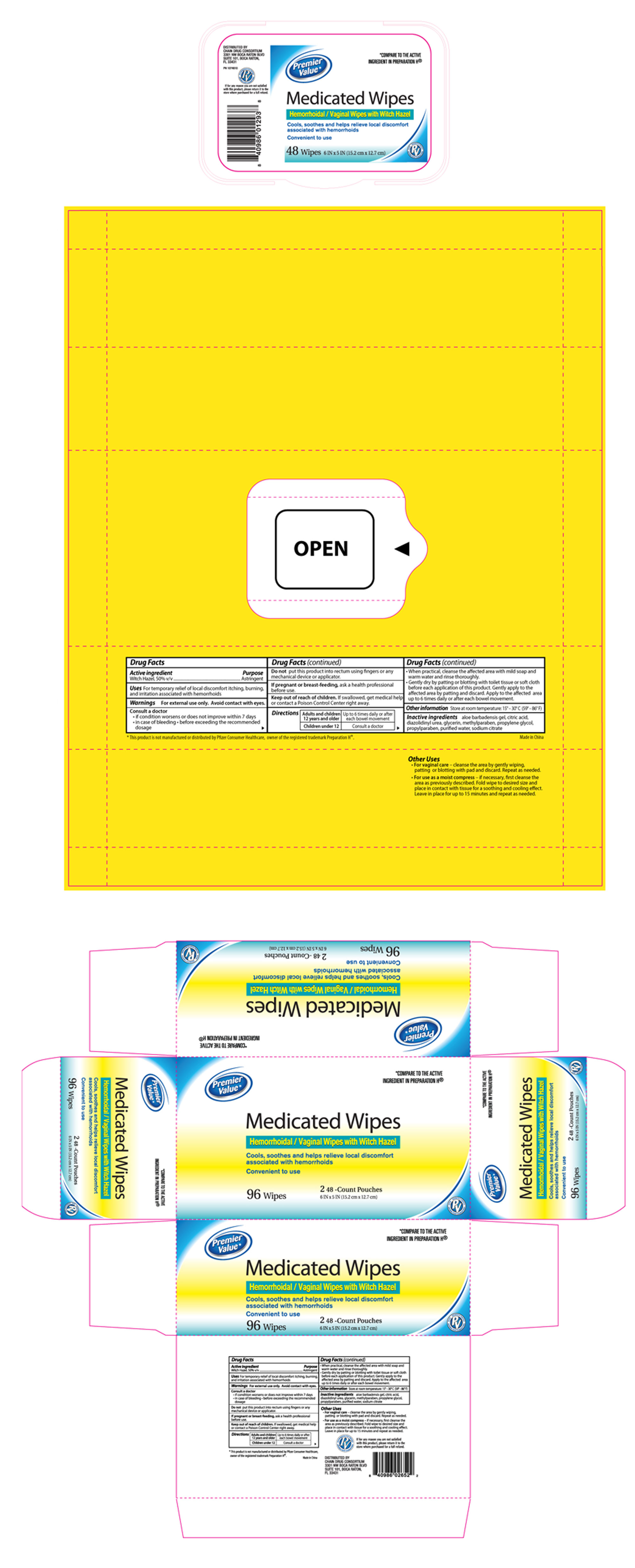 Premier Value Medicated Wipes Product Label