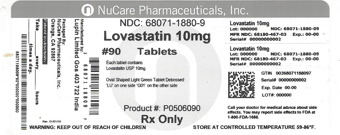 Lovastatin Tablets USP, 10 mg are light green colored, oval shaped, uncoated tablets, debossed with LU on one side and G01 on the other side. They are supplied as follows: