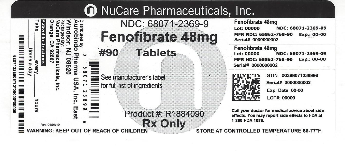 The following 2 images provide visual information about the product associated with Fenofibrate NDC 68071-2369 by Nucare Pharmaceuticals,inc., such as packaging, labeling, and the appearance of the drug itself. This resource could be helpful for medical professionals, pharmacists, and patients seeking to verify medication information and ensure they have the correct product.