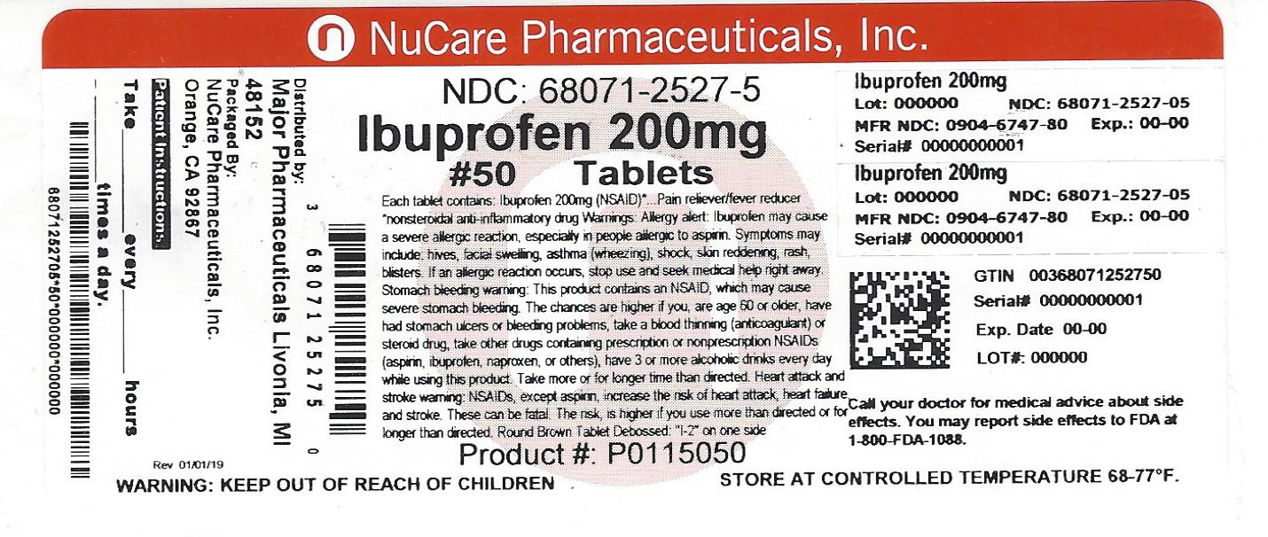 The following image provide visual information about the product associated with Ibuprofen NDC 68071-2527 by Nucare Pharmaceuticals,inc., such as packaging, labeling, and the appearance of the drug itself. This resource could be helpful for medical professionals, pharmacists, and patients seeking to verify medication information and ensure they have the correct product.