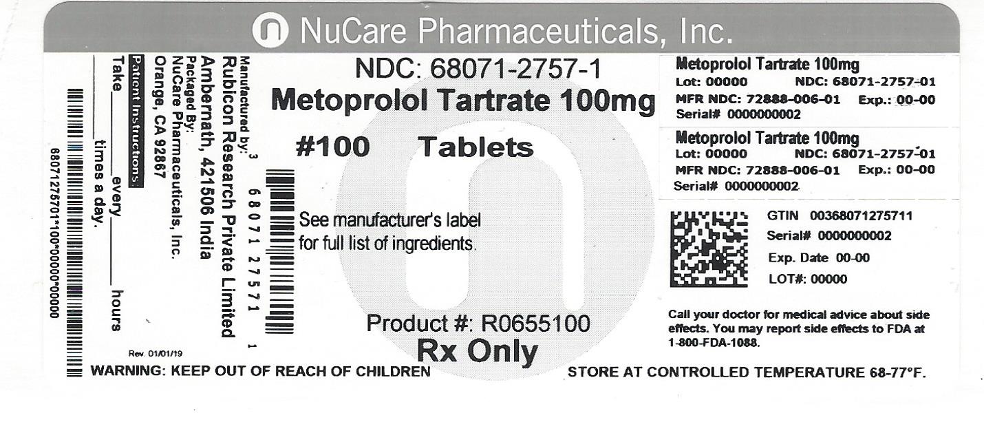 Start patients with contraindications to treatment during the early phase of suspected or definite myocardial infarction, patients who appear not to tolerate the full early treatment, and patients in whom the physician wishes to delay therapy for any other reason on metoprolol tartrate tablets, 100 mg twice daily, as soon as their clinical condition allows. Continue therapy for at least 3 months. Although the efficacy of metoprolol beyond 3 months has not been conclusively established, data from studies with other beta-blockers suggest that treatment should be continued for 1 to 3 years.