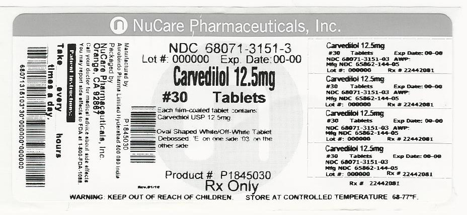 Carvedilol Tablets USP, 12.5 mg are white to off-white, oval shaped, film-coated tablets debossed with E on one side and 03 on the other side.