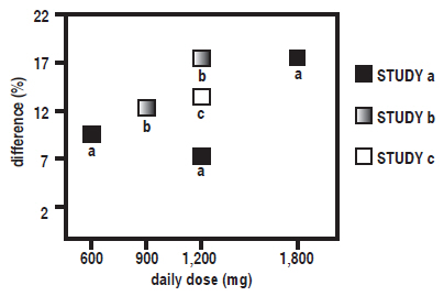 | Figure 4. Responder Rate in Patients Receiving Gabapentin Expressed as a Difference from Placebo by Dose and Study: Adjunctive Therapy Studies in Patients ≥ 12 Years of Age with Partial Seizures |
