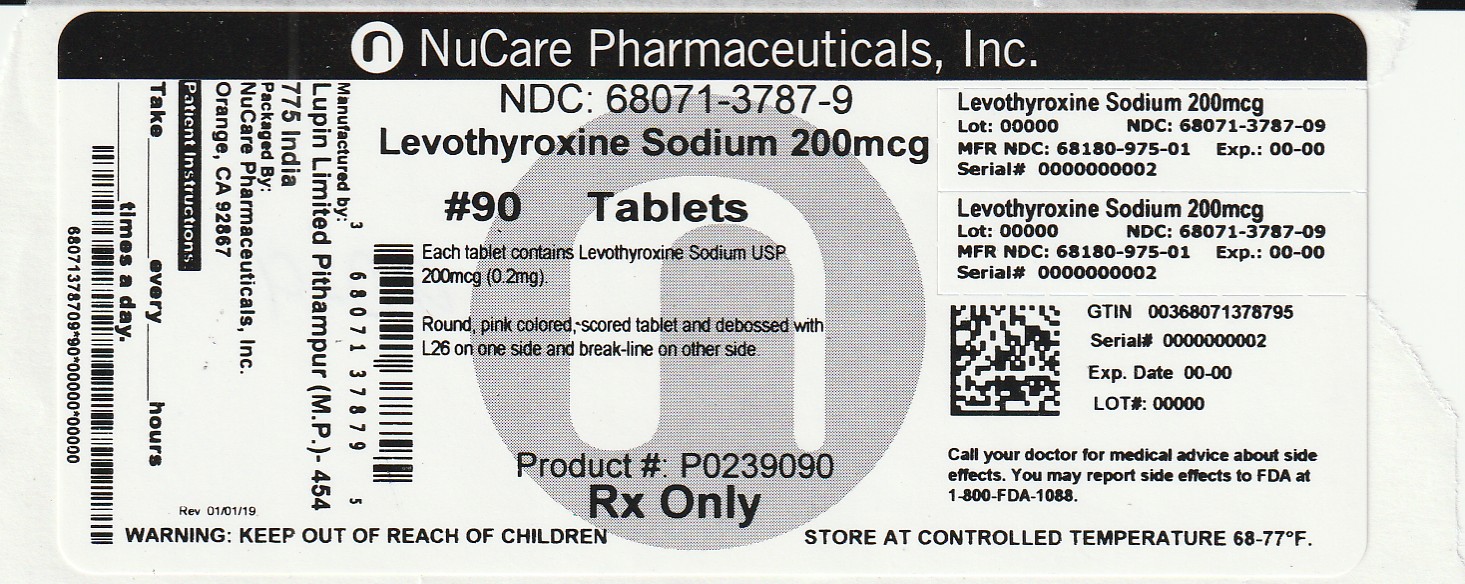 The following 2 images provide visual information about the product associated with Levothyroxine Sodium NDC 68071-3787 by Nucare Pharmaceuticals, Inc., such as packaging, labeling, and the appearance of the drug itself. This resource could be helpful for medical professionals, pharmacists, and patients seeking to verify medication information and ensure they have the correct product.