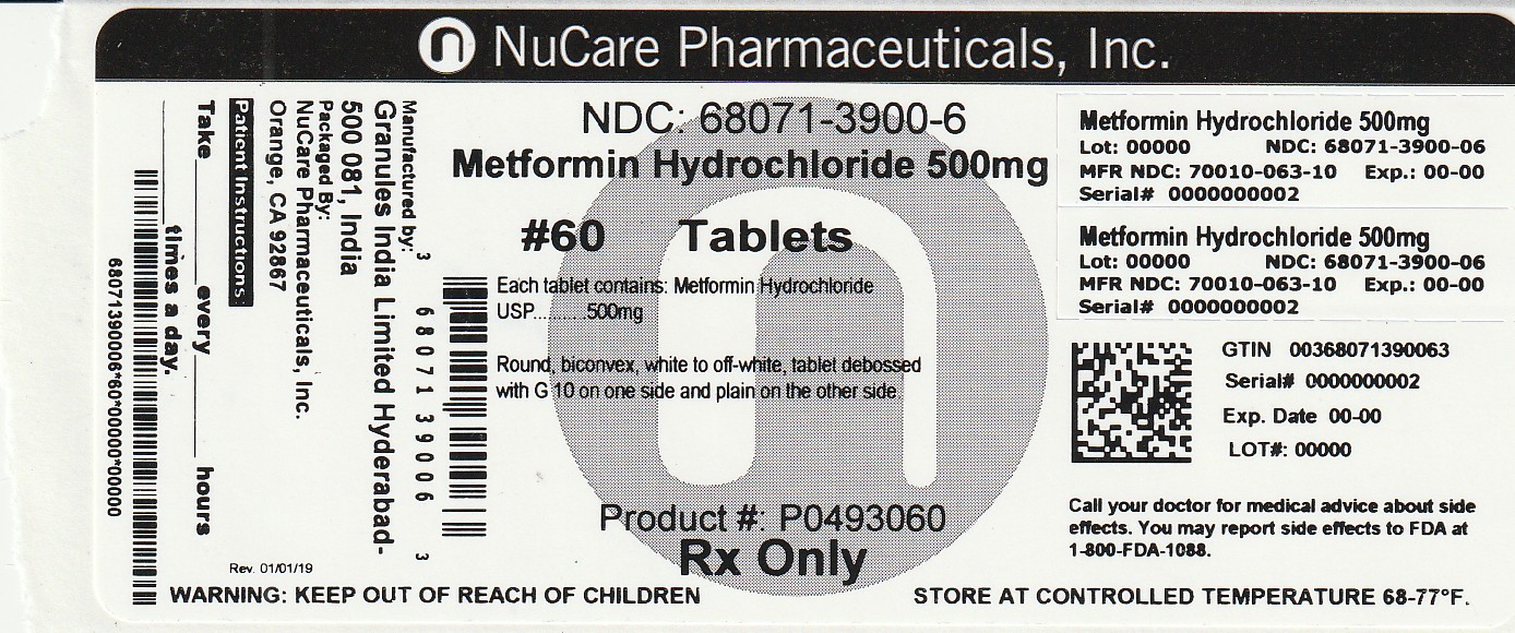 The following 2 images provide visual information about the product associated with Metformin Hydrochloride NDC 68071-3900 by Nucare Pharmaceuticals, Inc., such as packaging, labeling, and the appearance of the drug itself. This resource could be helpful for medical professionals, pharmacists, and patients seeking to verify medication information and ensure they have the correct product.