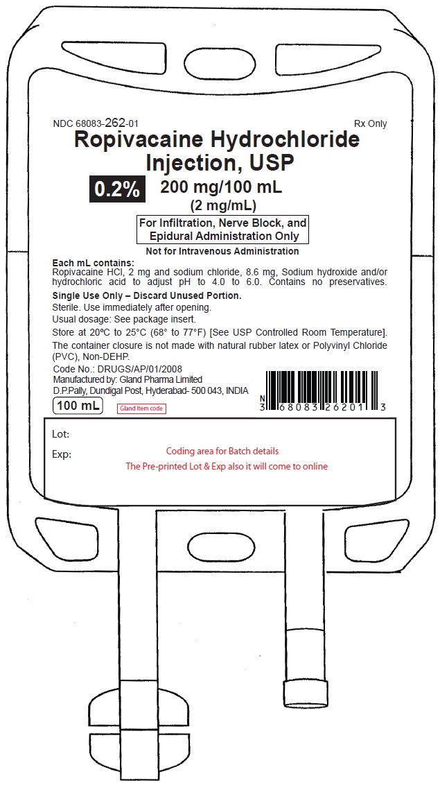 The following 7 images provide visual information about the product associated with Ropivacaine Hydrochloride NDC 68083-262 by Gland Pharma Limited, such as packaging, labeling, and the appearance of the drug itself. This resource could be helpful for medical professionals, pharmacists, and patients seeking to verify medication information and ensure they have the correct product.