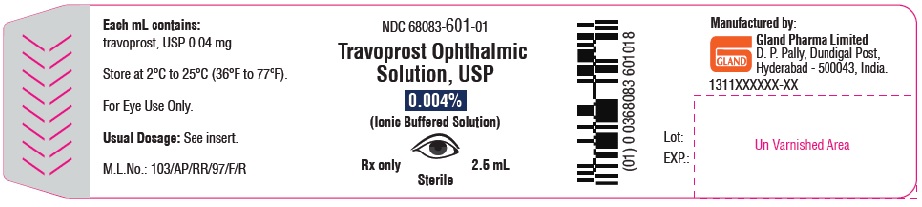 Travoprost ophthalmic solution, USP (ionic buffered solution) 0.004% is supplied as a 2.5 mL solution in a 5 mL and 5 mL solution in a 5 mL natural low density polyethylene bottle with a turquoise high density polyethylene screw cap. Tamper evidence screw cap and a low density polyethylene nozzle.