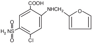 Furosemide is a diuretic which is an anthranilic acid derivative. Chemically, it is 4-chloro-N-furfuryl-5-sulfamoylanthranilic acid. Furosemide is a white to off-white, odorless, crystalline powder. It is practically insoluble in water, sparingly soluble in alcohol, freely soluble in dilute alkali solutions and insoluble in dilute acids. The CAS Registry Number is 54-31-9.