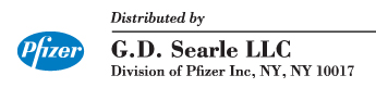 This text is a statement that mentions the distributor of a product, which is @& 6D Searle LLC, a division of Pfizer Inc based in New York.*