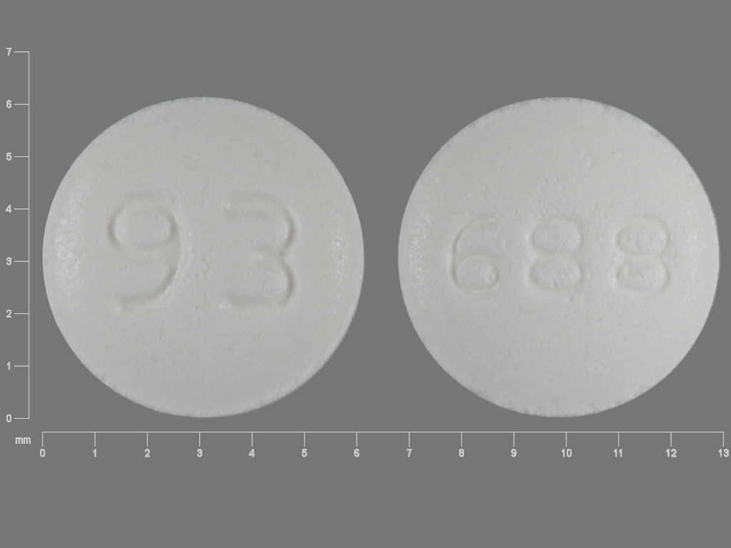 This appears to be a description of two different medications in pill form. The first pill is 5mg, white or off-white in color, with the numbers "688" and "93" debossed on opposite sides. The second pill is 25mg, also white or off-white, with the numbers "132" and "93" debossed on opposite sides. Without further context or information, it is not possible to determine what these medications are used for or their potential side effects.*