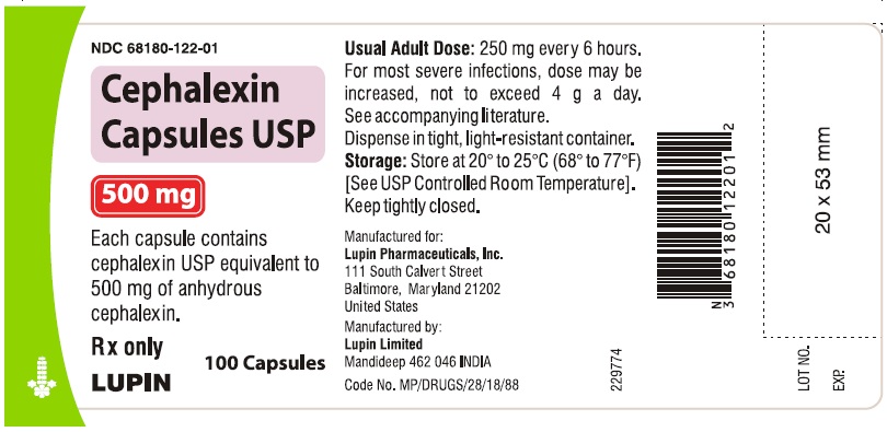 The following 3 images provide visual information about the product associated with Cephalexin NDC 68180-122 by Lupin Pharmaceuticals, Inc., such as packaging, labeling, and the appearance of the drug itself. This resource could be helpful for medical professionals, pharmacists, and patients seeking to verify medication information and ensure they have the correct product.