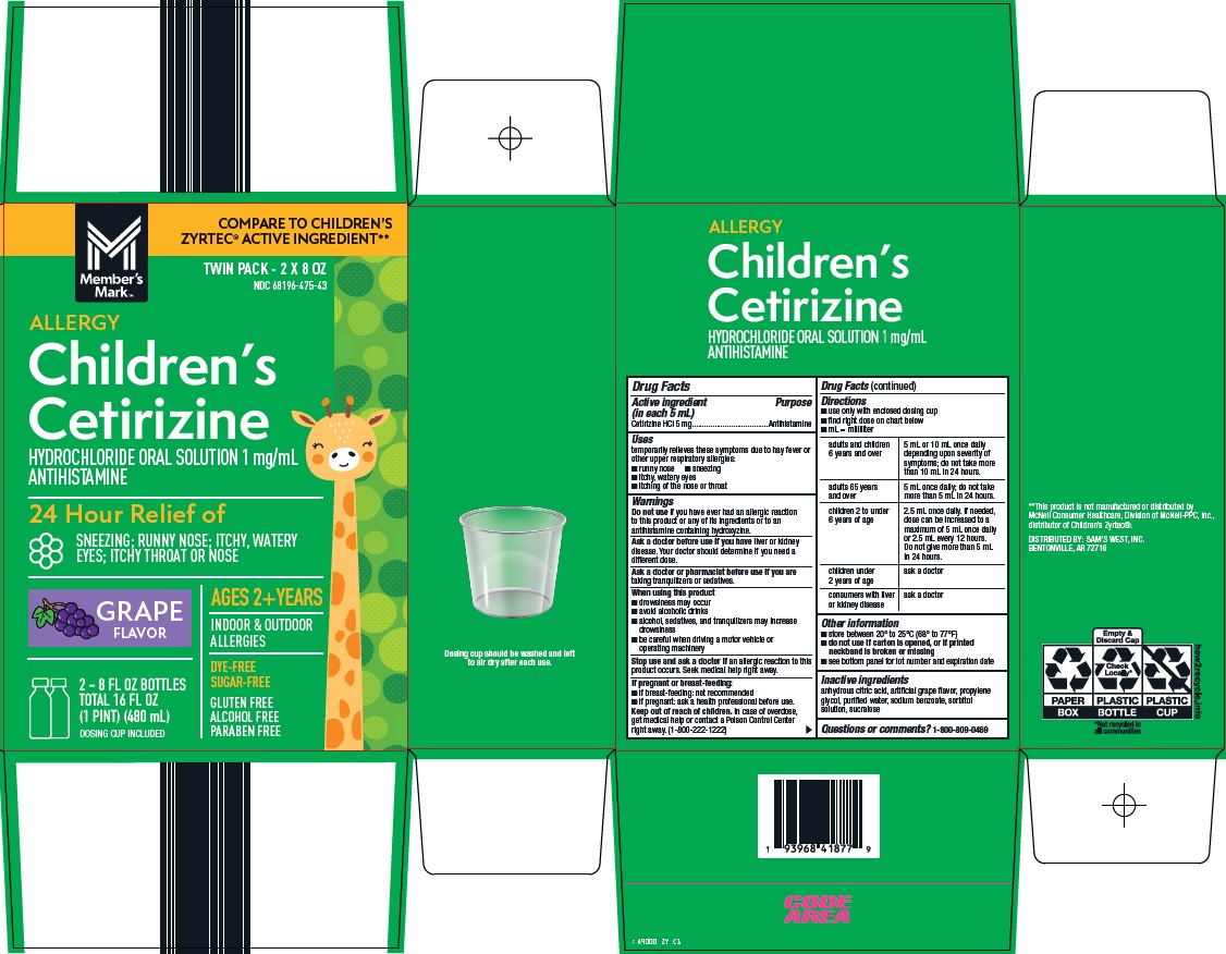 The following image provide visual information about the product associated with Members Mark Childrens Cetirizine NDC 68196-475 by Sam's West Inc, such as packaging, labeling, and the appearance of the drug itself. This resource could be helpful for medical professionals, pharmacists, and patients seeking to verify medication information and ensure they have the correct product.