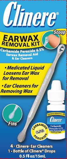 - CLINERE® EARWAX REMOVAL KIT W/4 CLINERE® EAR CLEANERS AND 1 X 0.5 FL OZ CARBAMIDE PEROXIDE BOTTLE