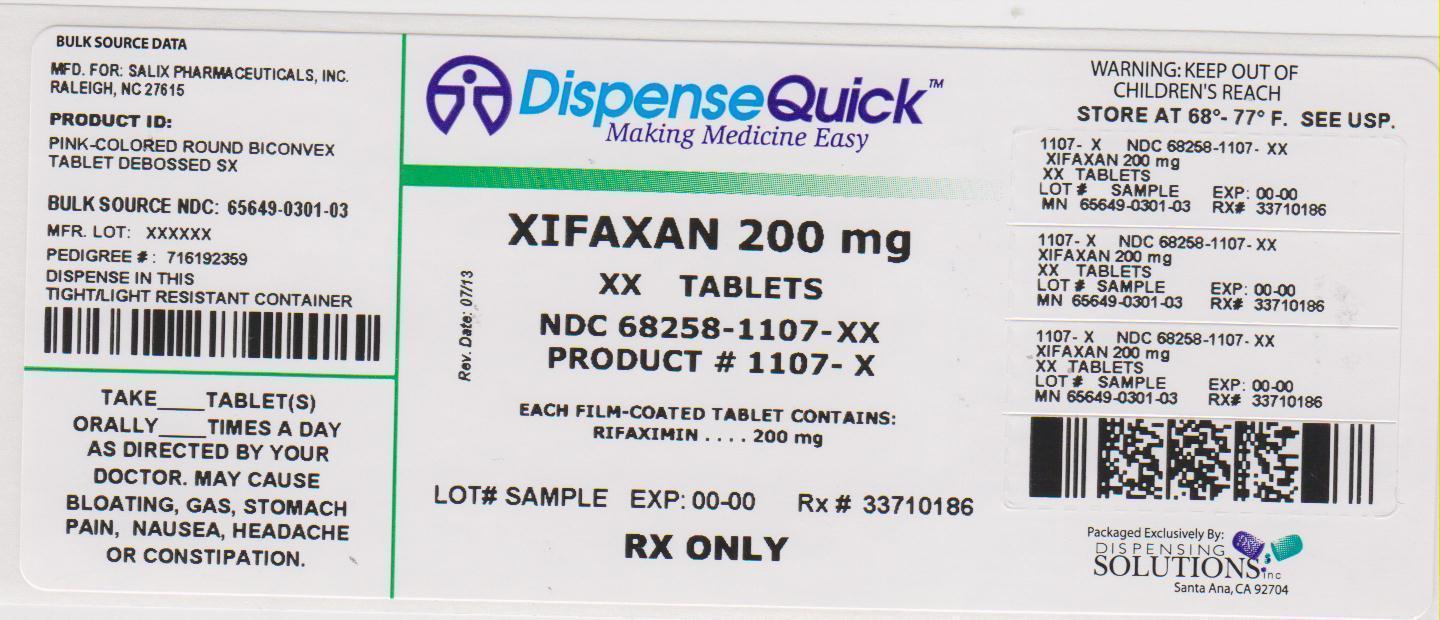 The following 5 images provide visual information about the product associated with Xifaxan NDC 68258-1107 by Dispensing Solutions, Inc., such as packaging, labeling, and the appearance of the drug itself. This resource could be helpful for medical professionals, pharmacists, and patients seeking to verify medication information and ensure they have the correct product.