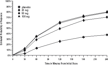 Sumatriptan Succinate Tablets, 25, 50, and 100 mg of sumatriptan (base) as the succinate.