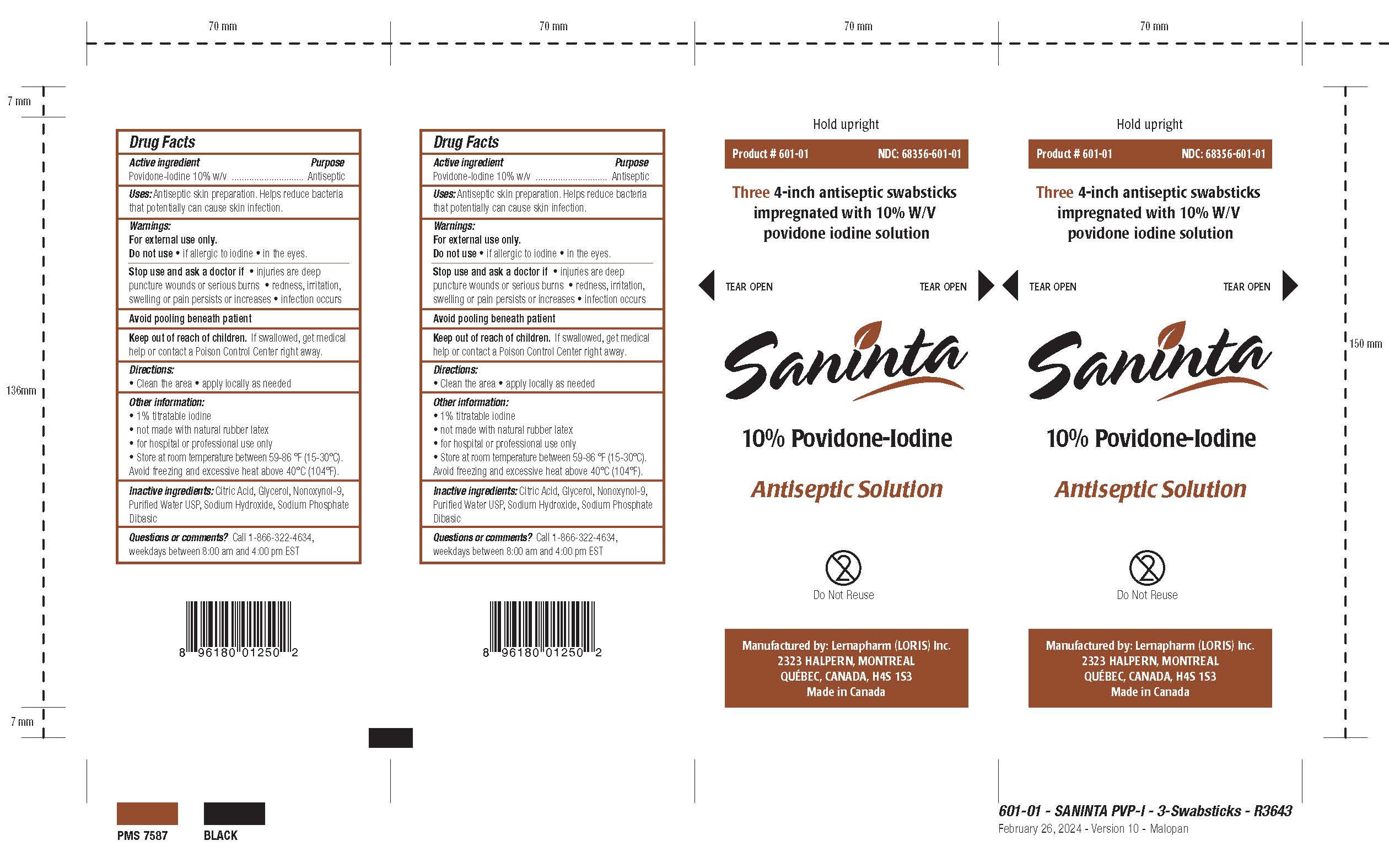 image of NDC 68356-601-01 label - 601 01 Saninta PVP I 3 Swabsticks 4up R3643 V10