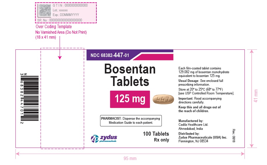 The following 10 images provide visual information about the product associated with Bosentan NDC 68382-447 by Zydus Pharmaceuticals Usa Inc., such as packaging, labeling, and the appearance of the drug itself. This resource could be helpful for medical professionals, pharmacists, and patients seeking to verify medication information and ensure they have the correct product.