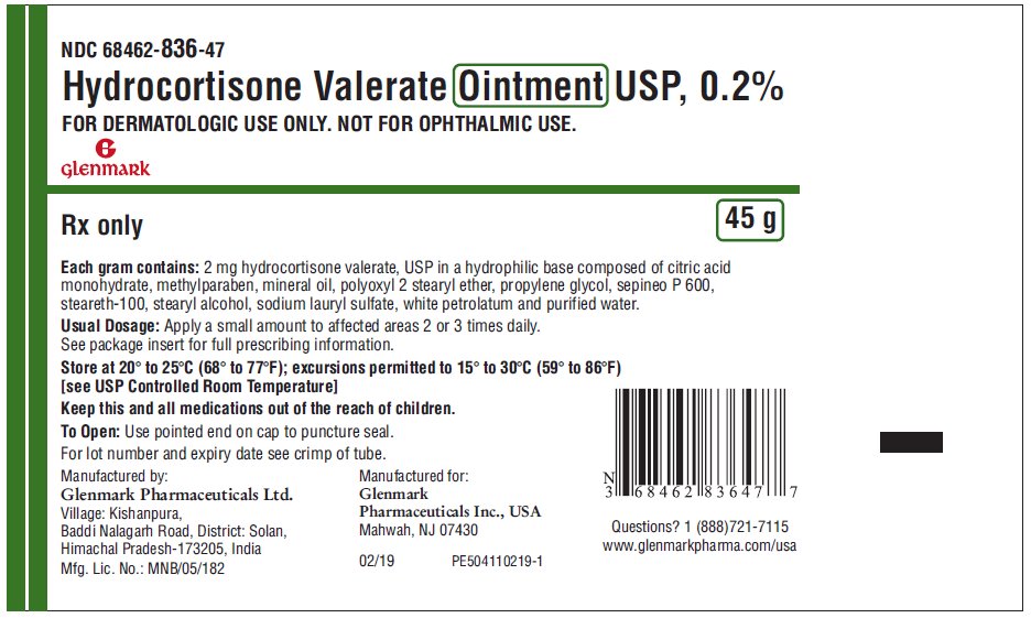 This is a pharmaceutical product manufactured by Glenmark Pharmaceuticals L. The hydrocortisone valerate cream USP contains 0.2% of hydrocortisone valerate and is to be used only for dermatological purposes and should not be used for ophthalmic purposes. The product is to be stored between 20°C to 25°C (68°F to 77°F). The product is for use by prescription only. The dosage and other instructions are mentioned on the tube of the product. Contact information for Glenmark Pharmaceuticals Inc, USA, is also available for any inquiries regarding the product. NDC 68462-836-65 is the product code.*