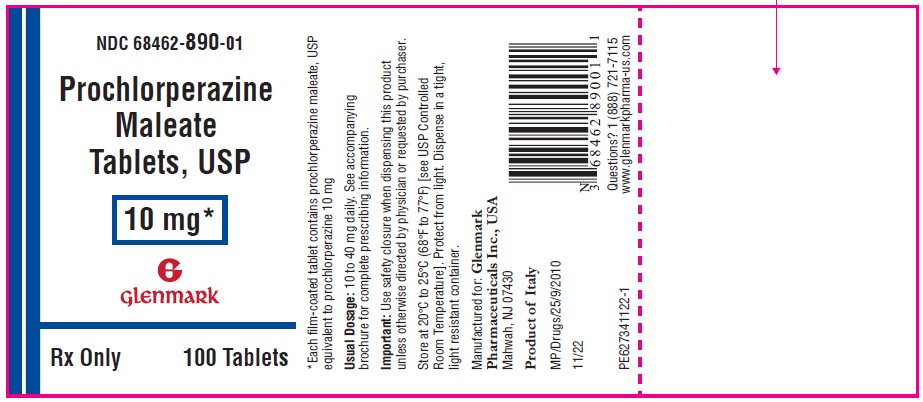 This is a prescription drug named Prochlorperazine Maleate. It comes in the form of tablets and the container holds 100 tablets. The manufacturer of the drug is Glenmark. The identification number of the drug is NDC 68462-890-01.*