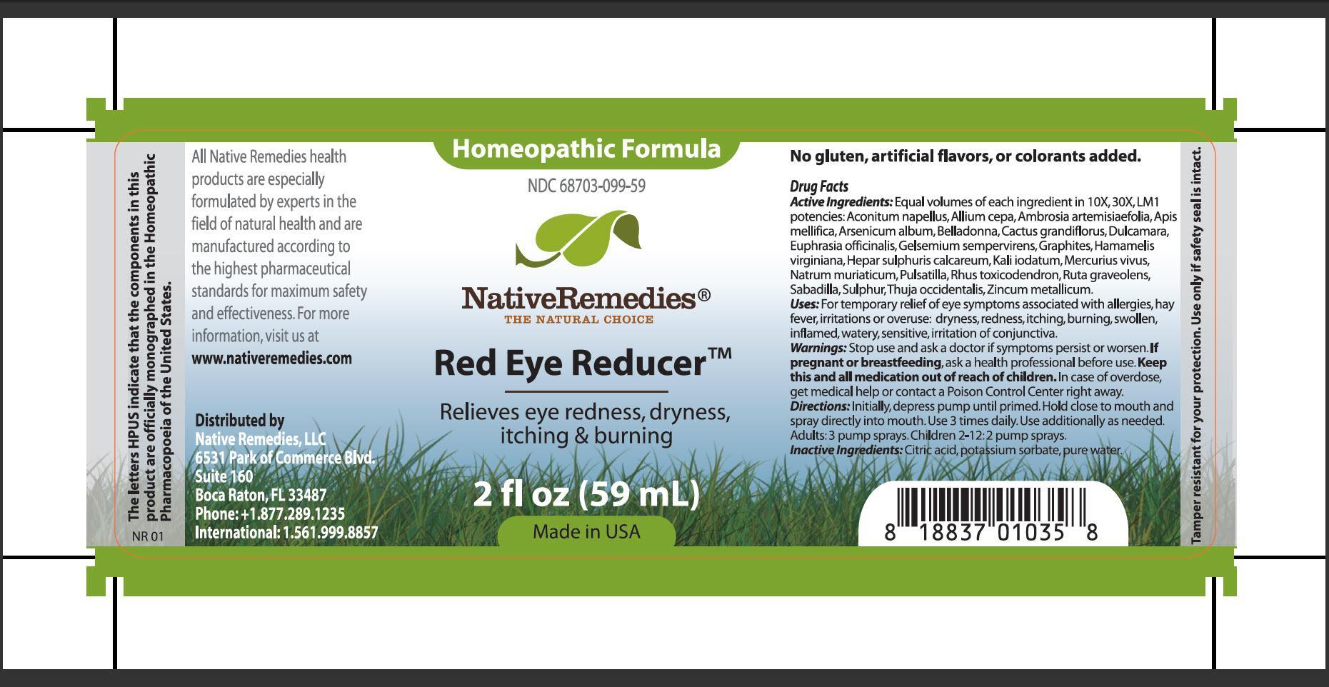 The following image provide visual information about the product associated with Red Eye Reducer NDC 68703-099 by Native Remedies, Llc, such as packaging, labeling, and the appearance of the drug itself. This resource could be helpful for medical professionals, pharmacists, and patients seeking to verify medication information and ensure they have the correct product.