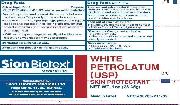 The following 2 images provide visual information about the product associated with White Petrolatum NDC 68786-211 by Sion Biotext Medical Ltd, such as packaging, labeling, and the appearance of the drug itself. This resource could be helpful for medical professionals, pharmacists, and patients seeking to verify medication information and ensure they have the correct product.