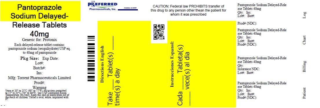 This is a pharmaceutical label for a medication called "Pantoprazole Sodium Delayed Release Tablets". The medication is available in 40mg and 20mg tablets. The label includes information about the manufacturer, the ingredients, and dosage instructions.*