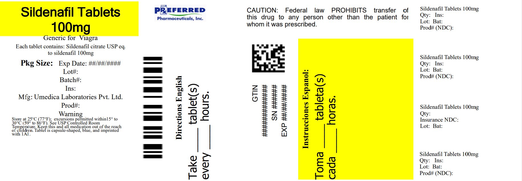 Sildenafil tablets, USP are supplied as pale blue to blue, caplet shaped film-coated tablets containing sildenafil citrate USP equivalent to 50 mg, or 100 mg of sildenafil. Tablets are debossed with 1A1 and 1A2 on one side and plain on the other to indicate the dosage strengths viz. 100 mg and 50 mg respectively.