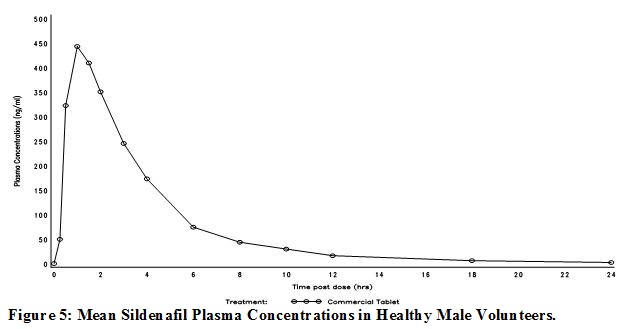 • take medicines called nitrates (such as nitroglycerin)• use street drugs called “poppers” such as amyl nitrate or amyl nitrite, and butyl nitrate• take any medicines called guanylate cyclase stimulators such as riociguat (Adempas)• are allergic to sildenafil, as contained in sildenafil tablets and REVATIO, or any of the ingredients in sildenafil tablets. See the end of this leaflet for a complete list of ingredients in sildenafil tablets.• have or have had heart problems such as a heart attack, irregular heartbeat, angina, chest pain, narrowing of the aortic valve or heart failure• have had heart surgery within the last 6 months• have pulmonary hypertension• have had a stroke• have low blood pressure, or high blood pressure that is not controlled• have a deformed penis shape• have had an erection that lasted for more than 4 hours• have problems with your blood cells such as sickle cell anemia, multiple myeloma, or leukemia• have retinitis pigmentosa, a rare genetic (runs in families) eye disease• have ever had severe vision loss, including an eye problem called non-arteritic anterior ischemic optic neuropathy (NAION)• have bleeding problems• have or have had stomach ulcers• have liver problems• have kidney problems or are having kidney dialysis• have any other medical conditions• medicines called nitrates (see “What is the most importantinformation I should know about sildenafil tablets?”)• medicines called guanylate cyclase stimulators, such as riociguat (Adempas)• medicines called alpha blockers such as Hytrin (terazosin HCl), Flomax (tamsulosin HCl), Cardura (doxazosin mesylate), Minipress (prazosin HCl), Uroxatral (alfuzosin HCl), Jalyn (dutasteride and tamsulosin HCl), or Rapaflo (silodosin). Alpha-blockers are sometimes prescribed for prostate problems or high blood pressure. In some patients, the use of sildenafil tablets with alpha-blockers can lead to a drop in blood pressure or to fainting.• medicines called HIV protease inhibitors, such as ritonavir (Norvir), indinavir sulfate (Crixivan), saquinavir (Fortovase or Invirase) or atazanavir sulfate (Reyataz)• some types of oral antifungal medicines, such as ketoconazole (Nizoral), and itraconazole (Sporanox)• some types of antibiotics, such as clarithromycin (Biaxin), telithromycin (Ketek), or erythromycin• other medicines that treat high blood pressure• other medicines or treatments for ED• Sildenafil tablets contains sildenafil, which is the same medicine found in another drug called REVATIO. REVATIO is used to treat a rare disease called pulmonary arterial hypertension (PAH). Sildenafil tablets should not be used with REVATIO or with other PAH treatments containing sildenafil or any other PDE5 inhibitors (such as Adcirca [tadalafil]).• Take sildenafil tablets exactly as your healthcare provider tells you to take it.• Your healthcare provider will tell you how much sildenafil tablets to take and when to take it.• Your healthcare provider may change your dose if needed.• Take sildenafil tablets about 1 hour before sexual activity. You may take sildenafil tablets between 30 minutes to 4 hours before sexual activity if needed.• Sildenafil tablets can be taken with or without food. If you take sildenafil tablets after a high fat meal (such as a cheeseburger and french fries), sildenafil tablets may take a little longer to start working• Do nottake sildenafil tablets more than 1 time a day.• If you accidentally take too much sildenafil, call your doctor or go to the nearest hospital emergency room right away.• an erection that will not go away (priapism).If you have an erection that lasts more than 4 hours, get medical help right away. If it is not treated right away, priapism can permanently damage your penis.• sudden vision loss in one or both eyes.Sudden vision loss in one or both eyes can be a sign of a serious eye problem called non-arteritic anterior ischemic optic neuropathy (NAION). It is uncertain whether PDE5 inhibitors directly cause the vision loss. Stop taking sildenafil tablets and call your healthcare provider right away if you have sudden vision loss in one or both eyes.• sudden hearing decrease or hearing loss. Some people may also have ringing in their ears (tinnitus) or dizziness. If you have these symptoms, stop taking sildenafil tablets and contact a doctor right away.• headache• flushing• upset stomach• abnormal vision, such as changes in color vision (such as having a blue color tinge) and blurred vision• stuffy or runny nose• back pain• muscle pain• nausea• dizziness• rash• Store sildenafil tablets at room temperature between 68°F to 77°F (20°C to 25°C).