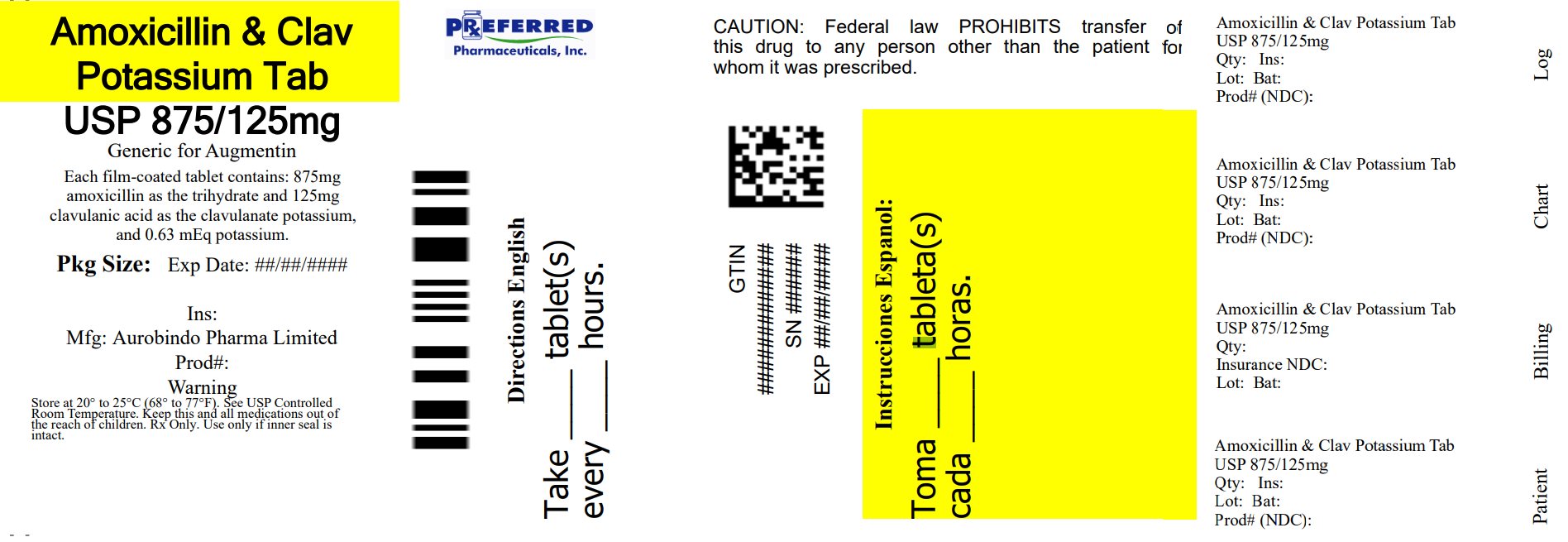 • 250 mg/125 mg: White to off-white, oval shaped, film-coated tablets, debossed with ‘A’ on one side and ‘63’ on the other side, contains 250 mg of amoxicillin USP as the trihydrate and 125 mg of clavulanic acid as the potassium salt.• 500 mg/125 mg: White to off-white, oval shaped, film-coated tablets, debossed with ‘X’ on one side and ‘33’ on the other side, contains 500 mg of amoxicillin USP as the trihydrate and 125 mg of clavulanic acid as the potassium salt.• 875 mg/125 mg: White to off-white, capsule shaped, film-coated tablets, debossed with ‘X’ on one side and score line in between 3 and 2 on the other side, contains 875 mg of amoxicillin USP as the trihydrate and 125 mg of clavulanic acid as the potassium salt.