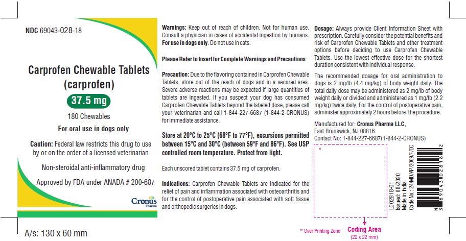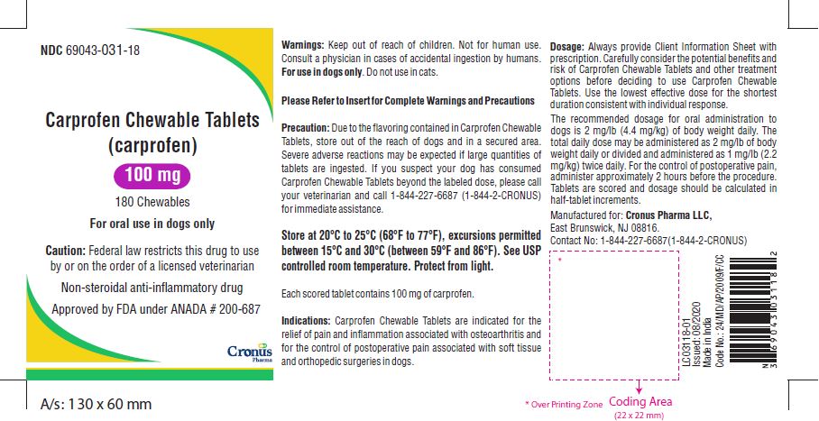 This is a description for Carprofen Chewable Tablets, which are a non-steroidal anti-inflammatory drug approved by the FDA for use in dogs. The chewable tablets are indicated for pain relief and inflammation associated with osteoarthritis, as well as postoperative pain after soft tissue and orthopedic surgeries. The dosage and precautions are clearly outlined, emphasizing the importance of keeping the medication out of reach of children and only using it under the supervision of a licensed veterinarian. The manufacturer's contact information is provided for further assistance.*