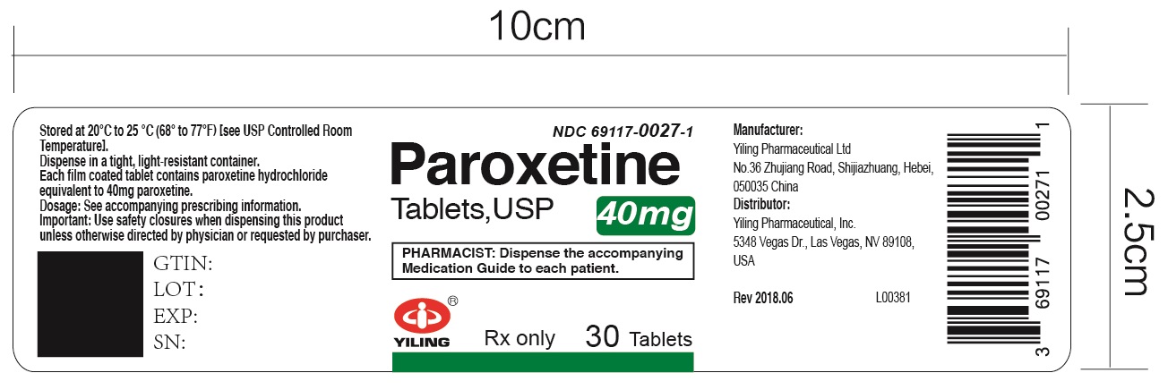 Each tablet of this medication contains 40mg paroxetine hydrochloride and should be stored at controlled room temperature (20°C to 25°C). It must be dispensed in a light-resistant container and using safety closures. Dosage information can be found in the accompanying prescribing information. The medication is distributed by Yiling Pharmaceutical Inc. and comes with a medication guide for patients. This product is only available with a prescription.*