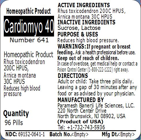 The following image provide visual information about the product associated with Cardiomyo 40 Number 641 NDC 69152-0641 by Paramesh Banerji Life Sciences Llc, such as packaging, labeling, and the appearance of the drug itself. This resource could be helpful for medical professionals, pharmacists, and patients seeking to verify medication information and ensure they have the correct product.