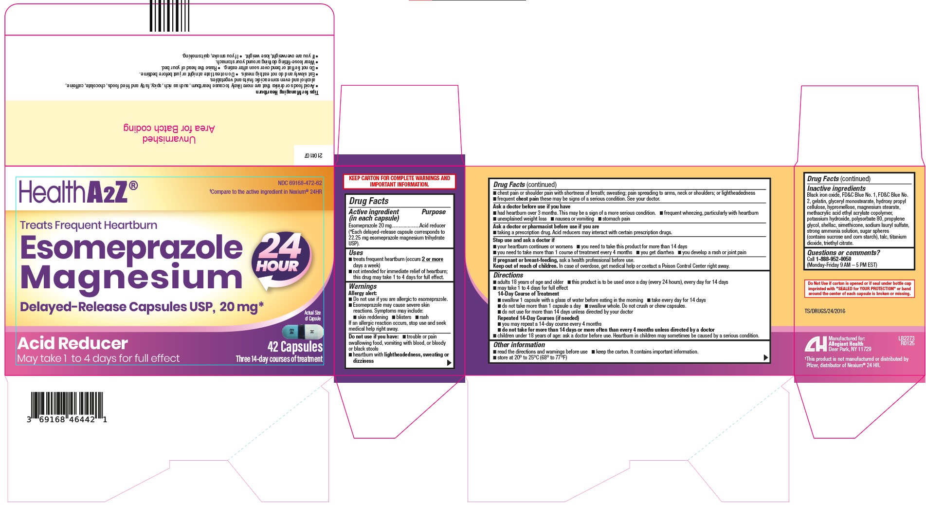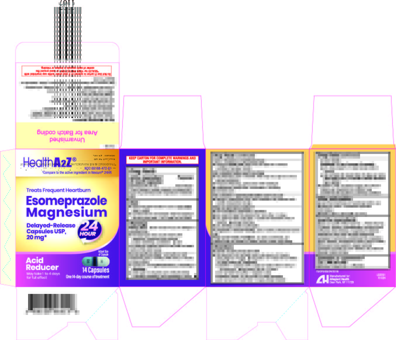 The following 3 images provide visual information about the product associated with Esomeprazole Magnesium NDC 69168-472 by Allegiant Health, such as packaging, labeling, and the appearance of the drug itself. This resource could be helpful for medical professionals, pharmacists, and patients seeking to verify medication information and ensure they have the correct product.