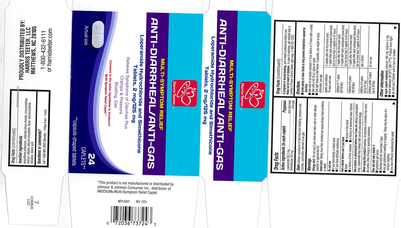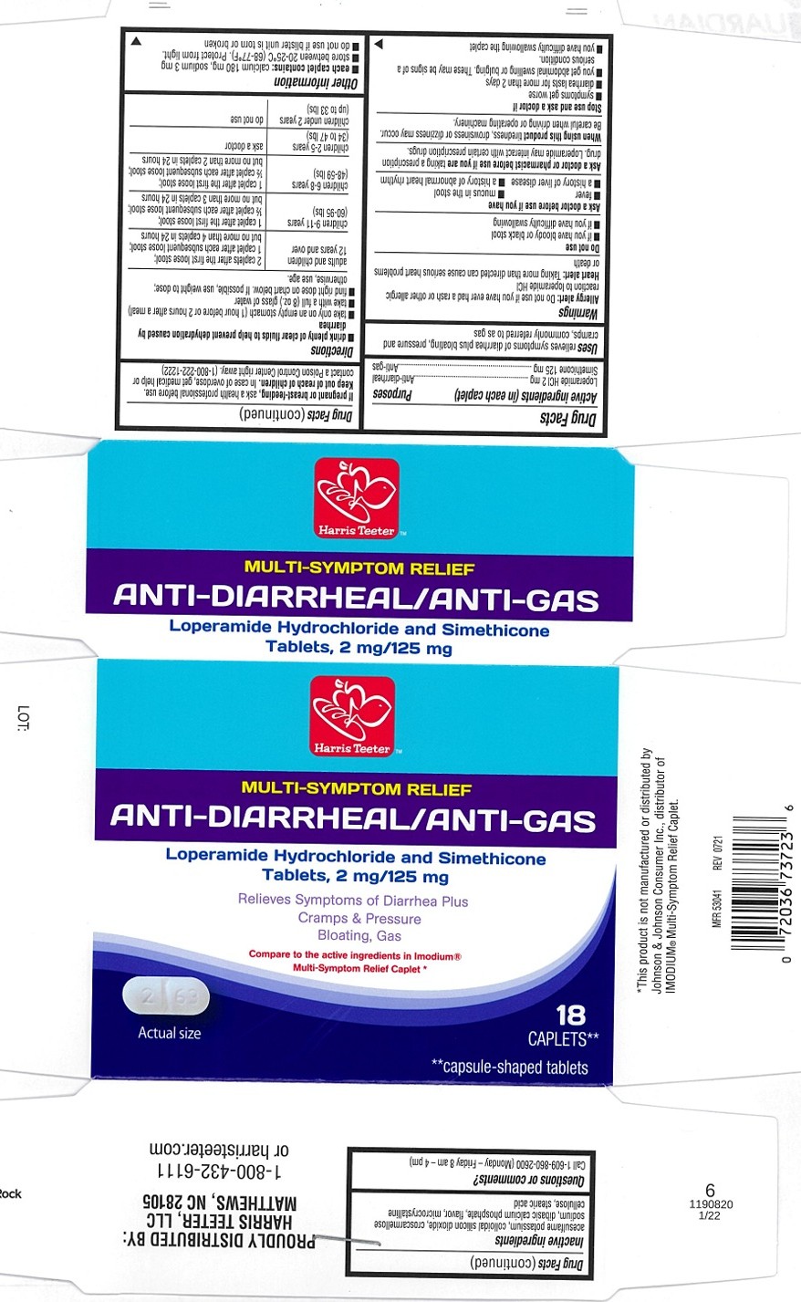 The following 3 images provide visual information about the product associated with Anti-diarrheal/anti-gas NDC 69256-265 by Harris Teeter, Llc, such as packaging, labeling, and the appearance of the drug itself. This resource could be helpful for medical professionals, pharmacists, and patients seeking to verify medication information and ensure they have the correct product.