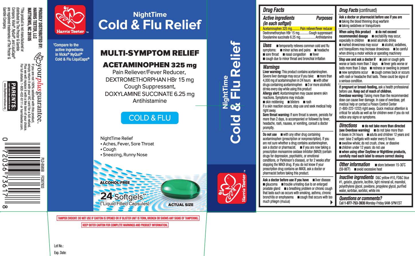 The following image provide visual information about the product associated with Nighttime Cold And Flu Relief NDC 69256-899 by Harris Teeter, Llc, such as packaging, labeling, and the appearance of the drug itself. This resource could be helpful for medical professionals, pharmacists, and patients seeking to verify medication information and ensure they have the correct product.